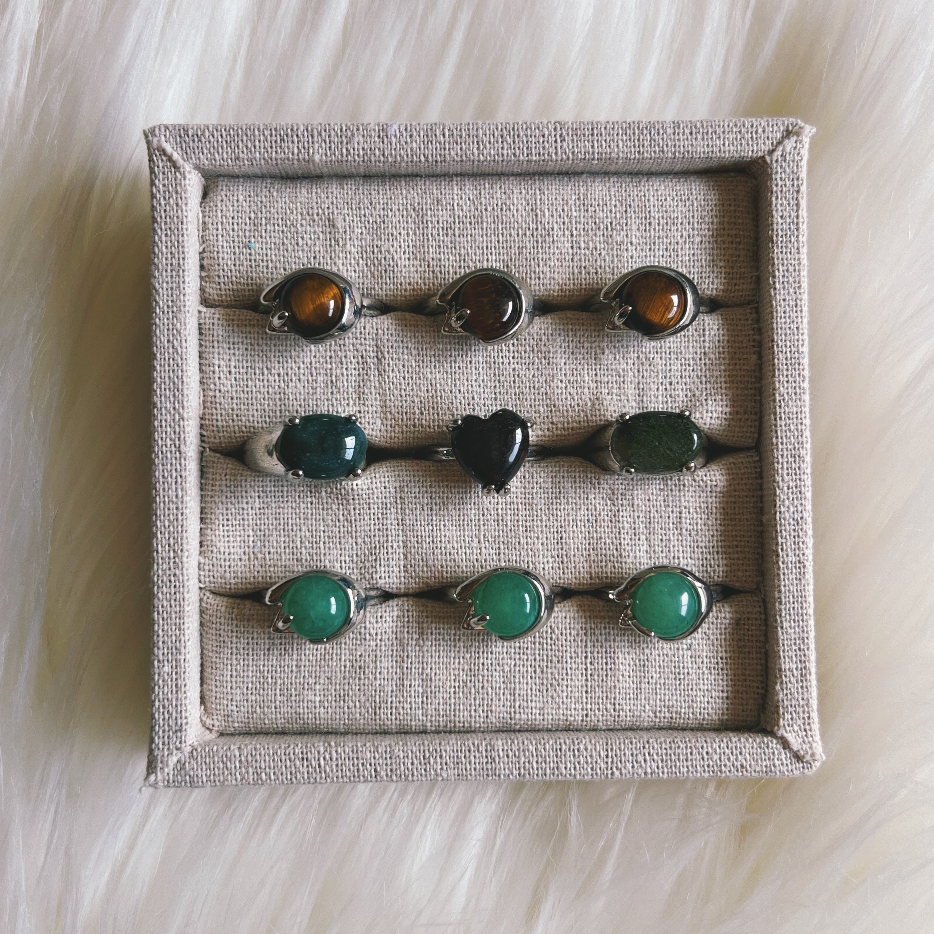 this listing is for the exact nine rings pictured, each in size 6. ring display not included.