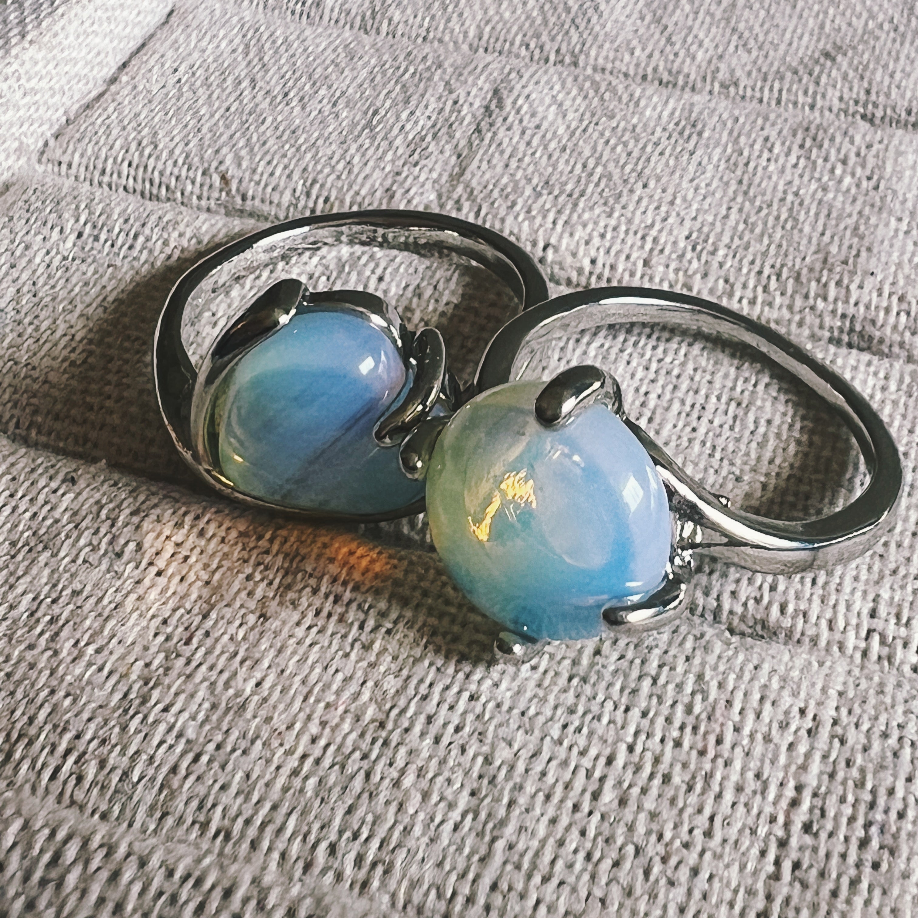 opalite is a man made glass with iridescent properties. although man made, it helps with communication on all levels. opalite works with the throat chakra.