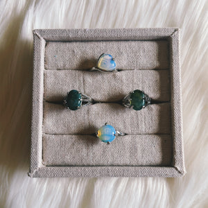 this listing is for the exact four rings pictured, each in size 8.5. ring display not included.
